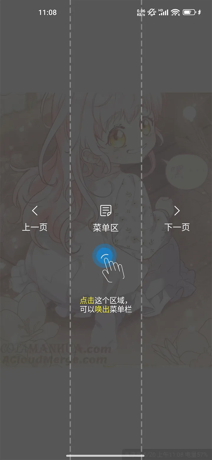 1、随便进入任意漫画阅读界面,点击页面中间呼出菜单栏。