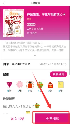 4、然后再按到右下角免费阅读。