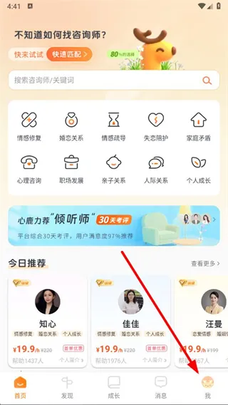 心鹿心理咨询是一款专业的心理健康软件,挺可靠的。它能提供一对一心理咨询服务,还有丰富的心理知识。不管你是有短暂的情绪困扰,还是面临家庭教育难题,它都能帮你科学应对。软件界面简洁,操作便捷,让心理健康管理变得轻松,能助力你开启心理成长之旅。它有专项咨询分区,能精准覆盖情感修复、婚恋关系等多个问题方向。采用陪伴式管理,搭配专家直播,推动用户结伴成长。还有咨询师专属提升训练营。结合社会热点解读心理知识,帮用户通过热点围观实现自我疗愈。以调研数据为支撑,针对性提供科学的家庭教育指导方案。如果你正为心理方面的问题发愁,不妨试试心鹿心理咨询。