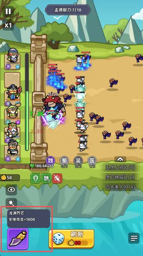 3. 多样玩法:采用抽卡塔防模式,玩家抽取武将卡牌抵御敌人,且内设丰富羁绊效果,如集齐刘备麾下关赵张马黄激活五虎上将羁绊,大幅提升队伍战斗力。