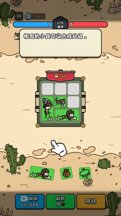 把相同的士兵可以进行合成。